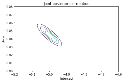 Both marginal distributions are moderately skewed, so the posterior means are somewhat different from the point estimates.