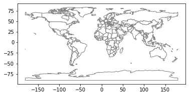 world.plot(color='white', edgecolor='gray', ax=ax)
