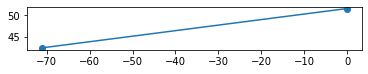 Exercise: Modify the code in this section to plot a point that shows the home town you chose in a previous exercise and a line from there to Boston.