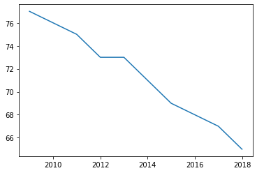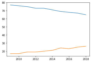 year = [2009, 2010, 2011, 2012, 2013, 2014, 2015, 2016, 2017, 2018]