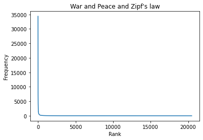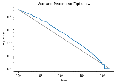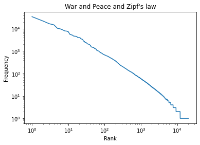 To see if this law holds for the words in War and Peace, we’ll make a Zipf plot, which shows: