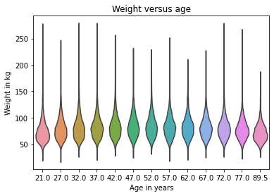 In the previous section we used scatter plots to visualize the relationship between weight and height. In this section, we’ll explore the relationship between weight and age, and we’ll see two new ways to visualize relationships: box plots and violin plots.