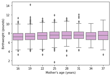 We used regression models to explore the effect of maternal age on birth weight. To see whether the effect might be due to chance, we used the slope of the regression line as the test statistic, and permutation to model the null hypothesis.
