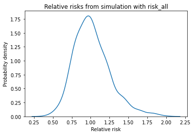 If we divide these lists elementwise, the result is a list of relative risks, one for each simulated experiment.