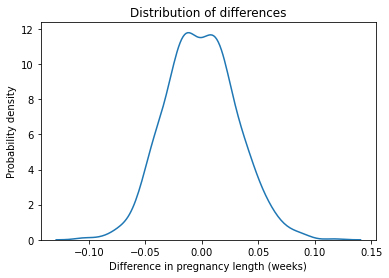 This result indicates that an observed difference of 0.1 pounds is possible, but not likely, if the actual difference between the groups is zero.