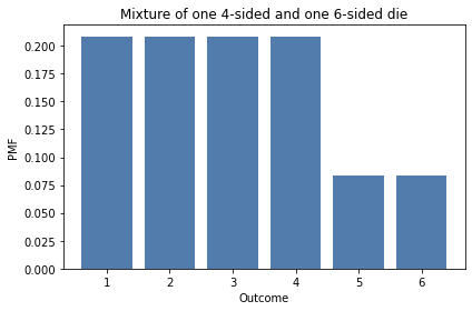 To compute the distribution of the mixture, I’ll compute the weighted average of the dice, using the probabilities in pmf_dice as the weights.