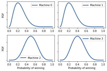 If things go according to plan, the machines with higher probabilities should get played more often.