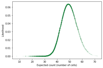 The following is a scatter plot of these likelihoods versus the expected counts.