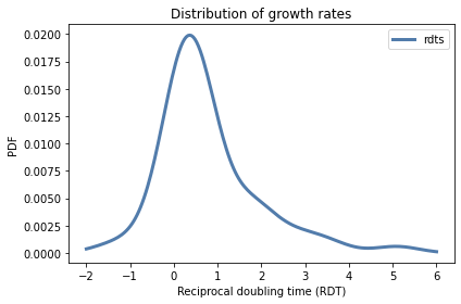Again, RDT stands for “reciprocal doubling time”, which is in doublings per year.