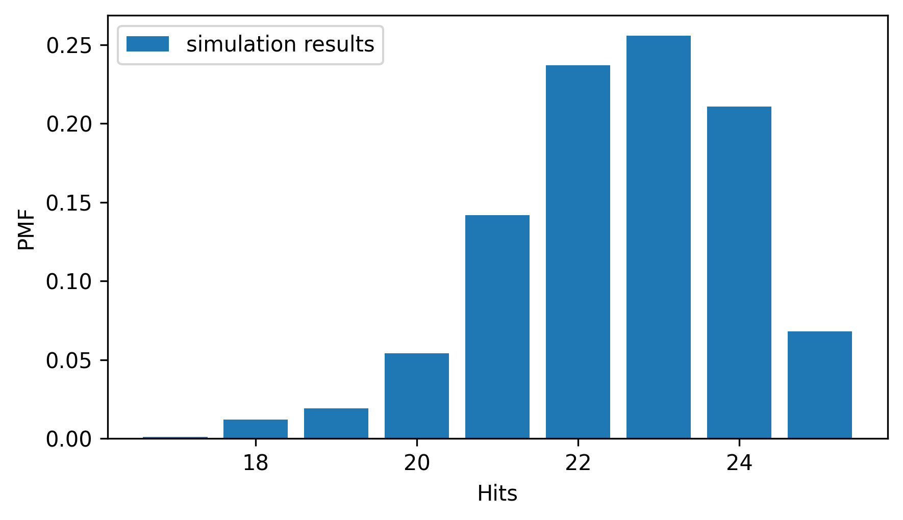 Here’s an example that simulates a round of 25 targets where the probability of hitting each one is 90%.